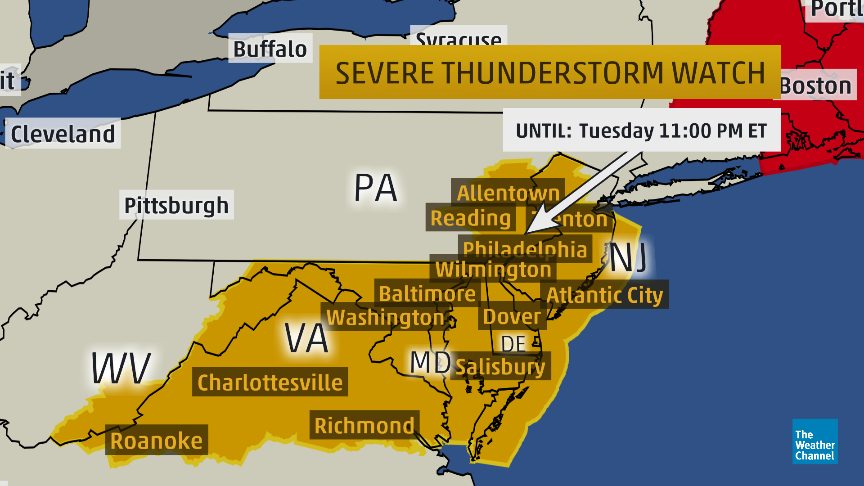 Severe Thunderstorm Watch Philadelphia - Weather Watch Severe Thunderstorms Could Bring Damaging Winds Hail Whp : As we await the arrival of downpours and thunderstorms this evening and tonight.